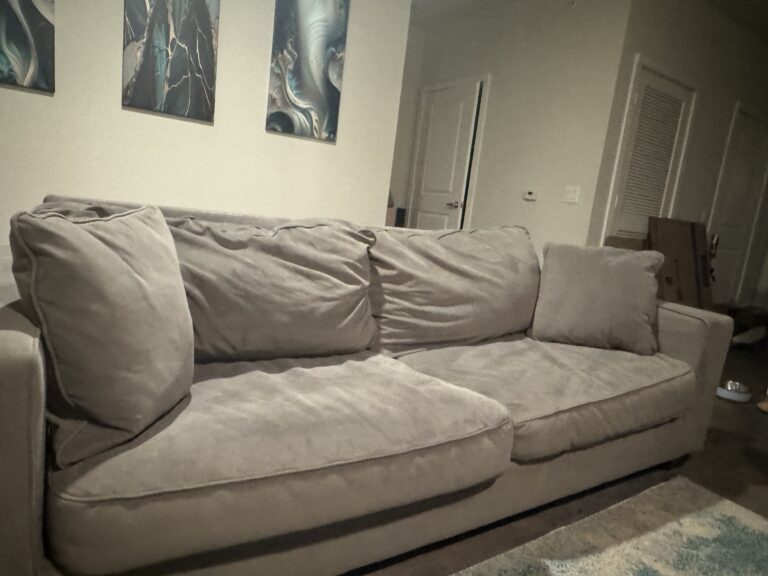 InFurnitureGray 2 seated couch and ottomanComfortable gray 2-seat couch with matching ottoman, originally from Ashley Furniture. This set is…