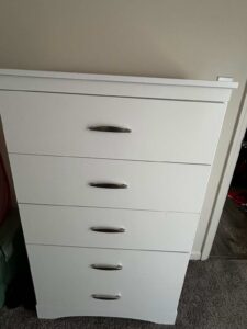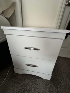This bedroom set features a bed, nightstand, and chest of drawers. They are in very good condition. Box spring and mattress can be included if you would like them.