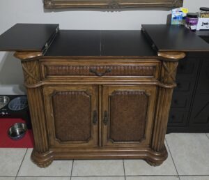 China Cabinet has a small scratch on the corner that can be fixed and the silverware table has a small stain but furniture is