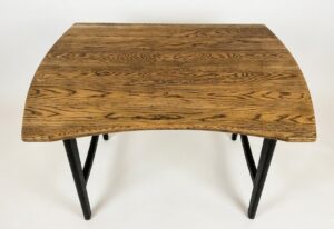 I designed and built this one-off white oak and fir writing desk. The base is dyed select douglas fir featuring tapered legs and gently