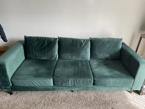 Upgrade your space with this eco‑friendly, non‑toxic Sabai Essential Sofa (https://sabai.design/products/the-essential-sofa-in-recycled-velvet?variant=43036480503968), upholstered in luxurious recycled velvet. The cushions are plush and supportive, and the sofa’s clean, elegant lines give it a timeless look that fits beautifully in modern, minimalist, or cozy interiors.