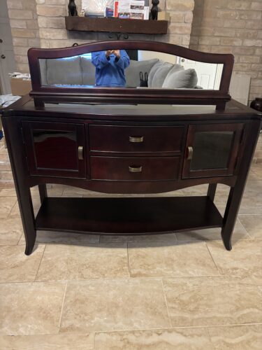 This is a high-quality, solid wood piece — NOT particleboard or mass-produced furniture. Approx. 62”W x 19.5”D x 36”H.